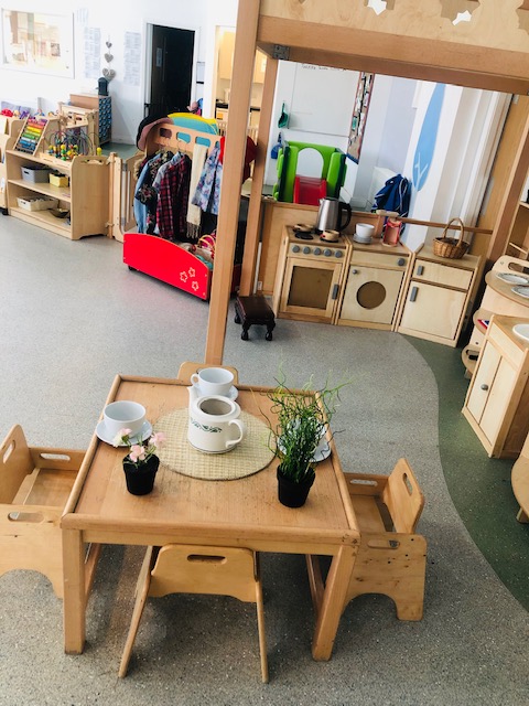 Our bright and airy playroom is furnished with high quality equipment designed specifically for young children. All of our equipment and educational resources were carefully chosen to offer learning and teaching opportunities for the children. We continuously encourage and support children to expand their explorations within authentic and natural resources.
